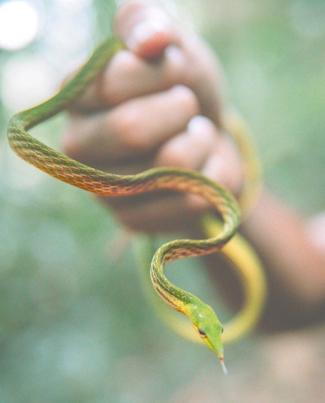 Ahaetulla nasuta also Known as Sri Lankan green vine snakeand long-nosed whip snake, is a venomous, slender green tree snake endemic to Sri Lanka.
